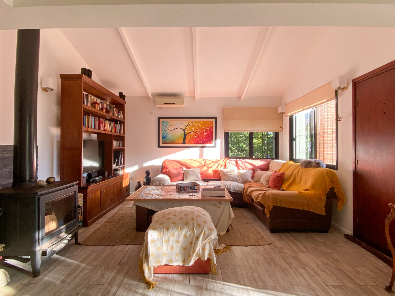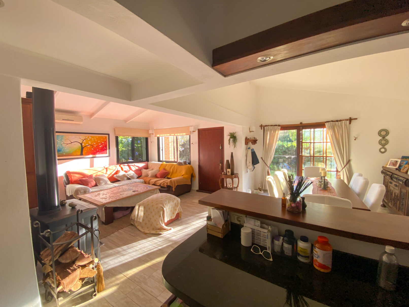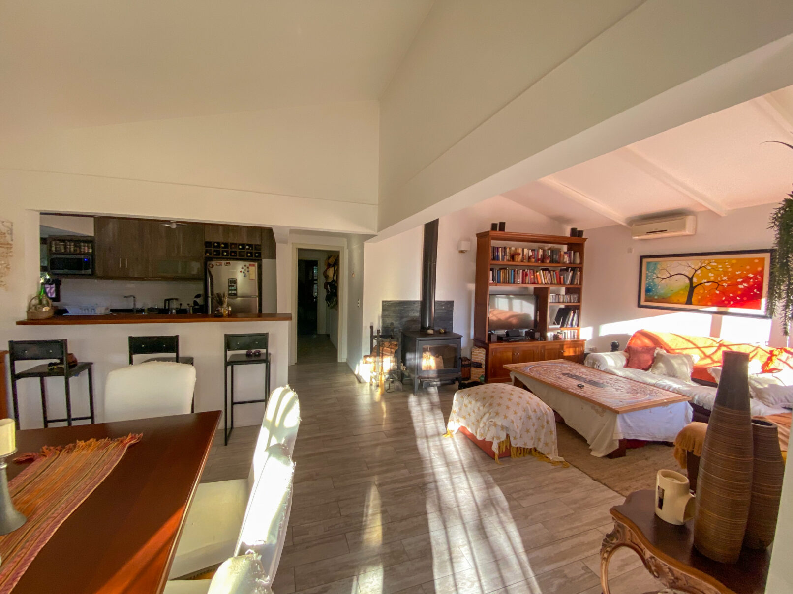 Atendiendo las necesidades de los nuevos propietarios, se realizaron reformas significativas: el dormitorio principal se amplió, los baños fueron modernizados y la cocina se integró con el área de living-comedor. Este último espacio se expandió hacia lo que anteriormente era un amplio alero, transformándose en un entorno funcional y acogedor.
