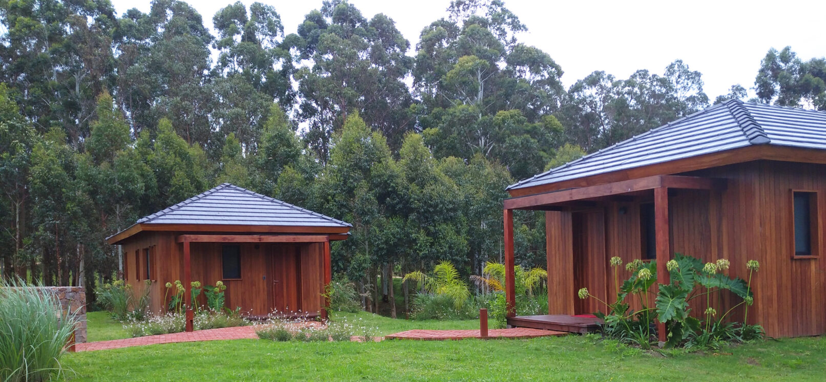 El sistema constructivo es wood framing sobre platea de hormigón, con cubiertas de madera dura y tejas cerámicas planas.