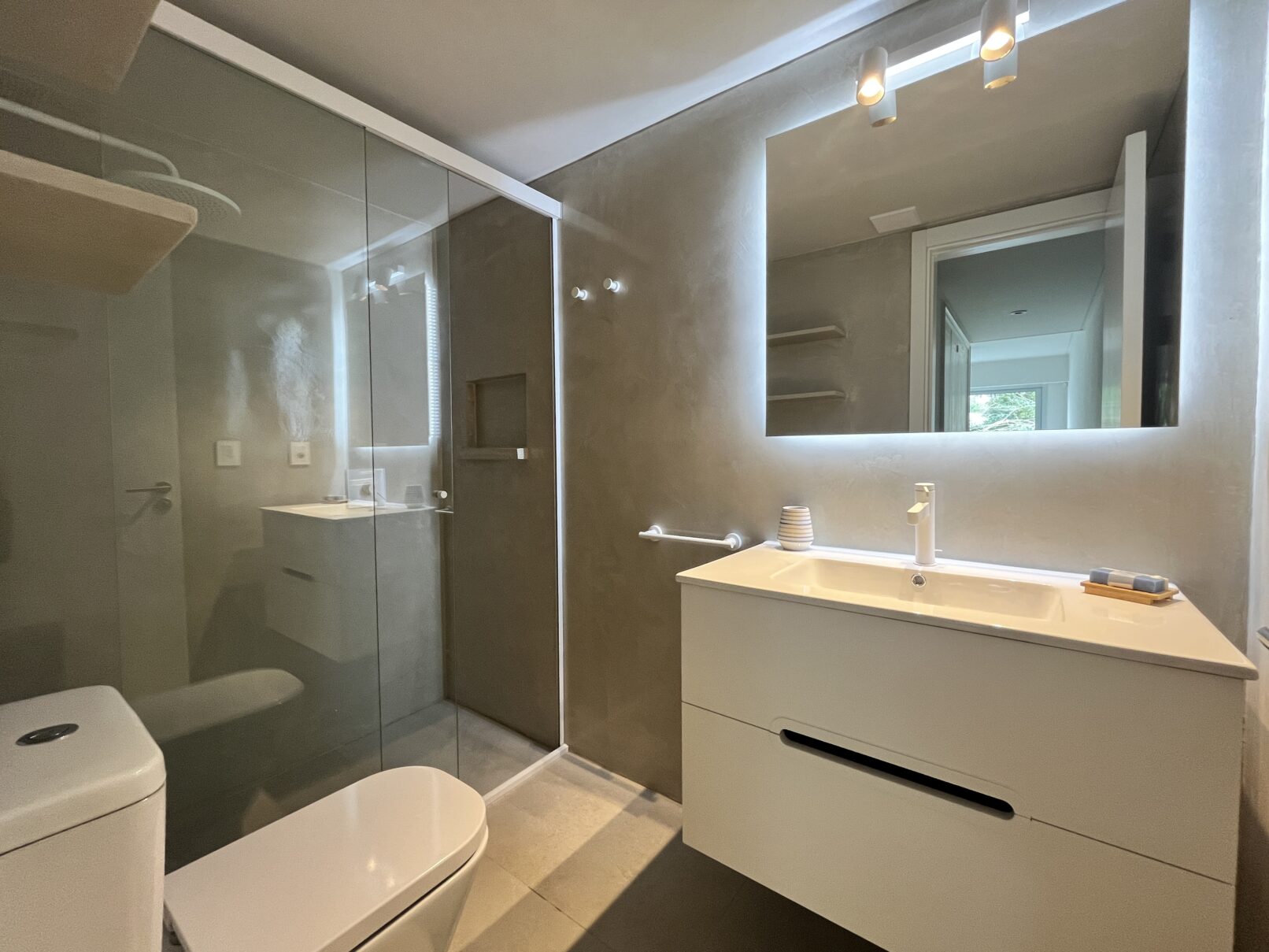 Se realizó un cambio completo de instalaciones, incluyendo la renovación de baños y cocina, con la incorporación de revestimientos modernos y equipamientos de alta calidad. Los pisos fueron reemplazados por materiales de última generación, y las aberturas se actualizaron para mejorar la eficiencia energética y el aislamiento acústico.